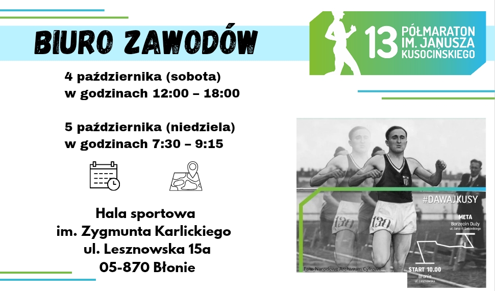 Biuro Zawodów – 13. Półmaraton im. Janusza Kusocińskiego